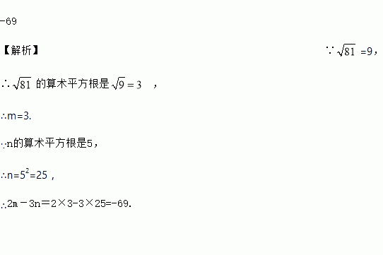 m是的算术平方根,n的算术平方根是5,则2m-3n=________.