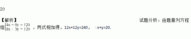 某地准备对一段长120 m的河道进行清淤疏通.若甲工程队先用 4天单独完成其中一部分河道的疏通任务,则余下的任务由乙工程队单独完成需要9天;若甲工程队先单独工作8天,则余下的任务由乙工程队单独完成需要3天.设甲工程队平均每天疏通河道xm,乙工程队平均每天疏通河道y m,则的值为_______.![]()