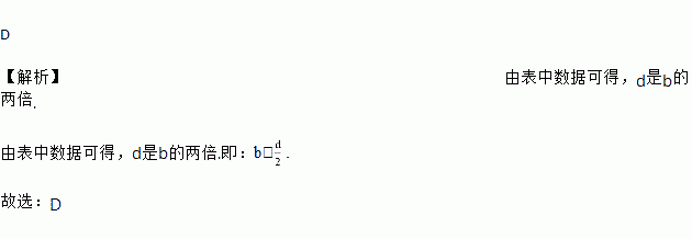 下面的表格列出了一项实验的统计数据(单位:cm),表示皮球下落高度d与落下时弹跳高度b的关系,试问下面式子中能表示这种关系的是( )