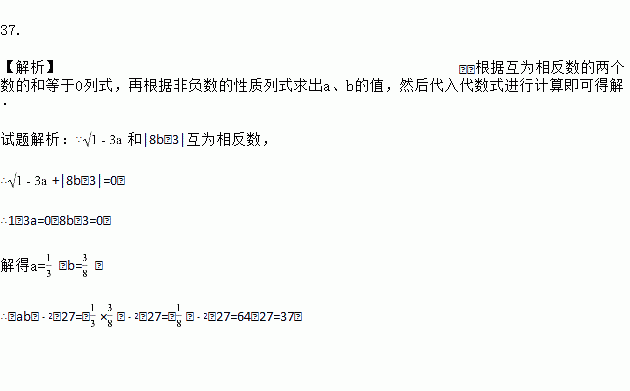 已知和|8b﹣3|互为相反数,求(ab)﹣2﹣27的值.