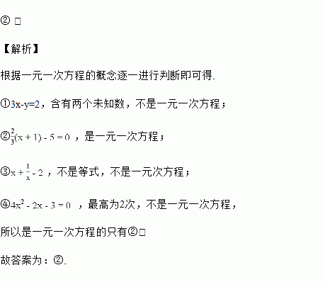 下列①3x-y=2;②;③;④ 中,属于一元一次方程的是 __________ (只填代号).