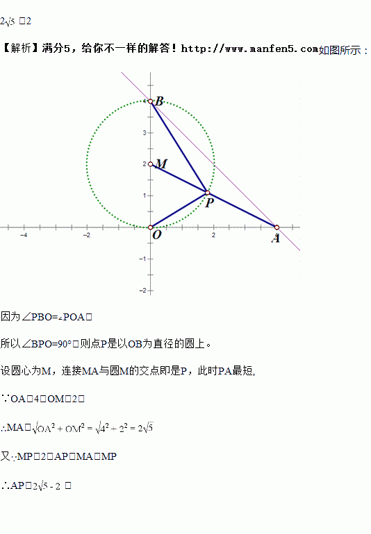 一次函数y=﹣x+4图象与x轴、y轴分别交于点A、点B,点P为正比例函数y=kx(k>0)图象上一动点,且满足∠PBO=∠POA,则AP的最小值为_____.