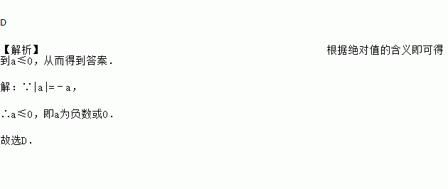 若|a|=﹣a,则有理数a为( )