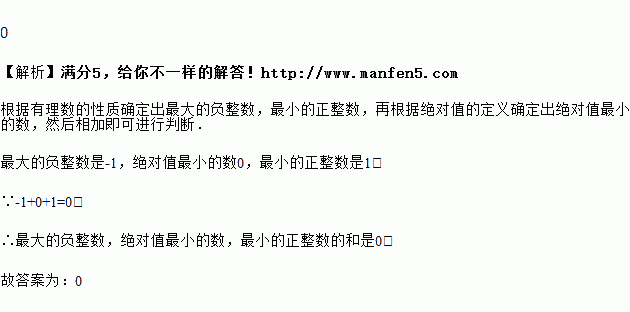 最大的负整数,绝对值最小的数,最小的正整数的和是________.