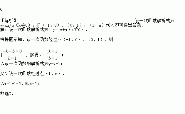 下表给出的是关于一次函数y=kx+b的自变量x及其对应的函数值y的若干信息:则根据表格中的相关数据可以计算得到m的值是( )