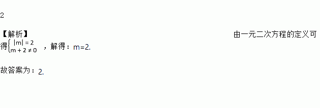 若方程(m+2)x|m|+3mx+1=0是关于x的一元二次方程,则m=__.