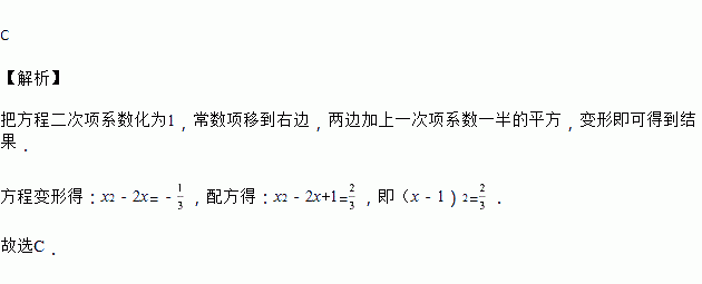 A. (x﹣3)2= B. 3(x﹣1)2= C. (x﹣1)2= D. (3x﹣1)2=1