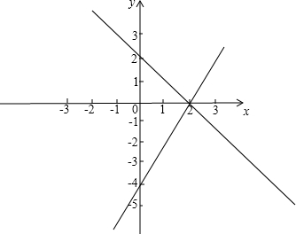 (2)从图象得出,当x<2时,函数y=-x+2的图象在函数y=2x-4的上方,