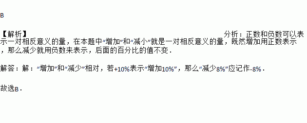 如果+10%表示“增加10%”,那么“减少8%”可以记作( )
