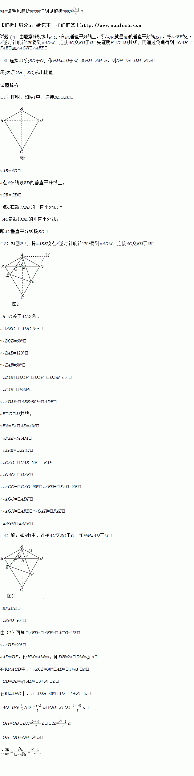 (2)如图2,若∠BCD=60°,∠ABC=90°,E,F分别为边BC,CD上的动点,且∠EAF=60°,AE,AF分别与BD交于G,H,求证:△AGH∽△AFE;