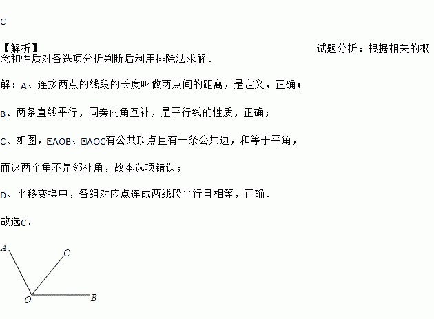 A. 连接两点的线段的长度叫做两点间的距离;