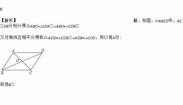 平行四边行的两条对角线把它分成全等三角形的对数是( )