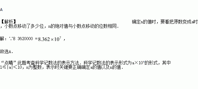 2016年3月份某省农产品实现出口额8 3620000美元. 其中8 3620000用科学记数法表示为( ).