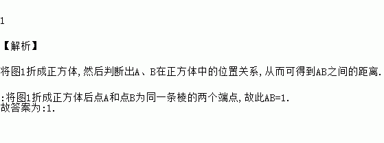 如图1是边长为1的六个小正方形组成的图形,它可以围成图2的正方体,则图1中小正方形顶点A,B围成的正方体上的距离是________ .