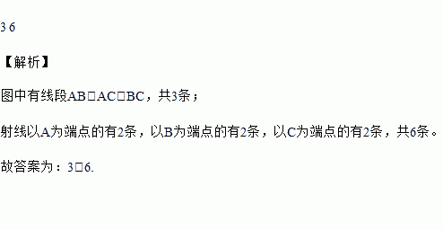 如图,点A,B,C在直线l上,则图中共有________条线段,有________条射线.