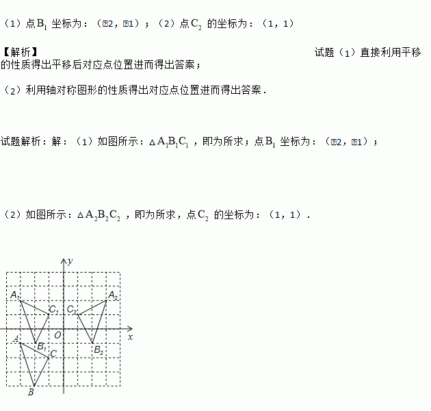 (2)画出△A1B1C1关于y轴对称的△A2B2C2,并写出点C2的坐标.