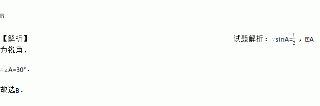 已知∠A为锐角,且sinA=,那么∠A等于( )