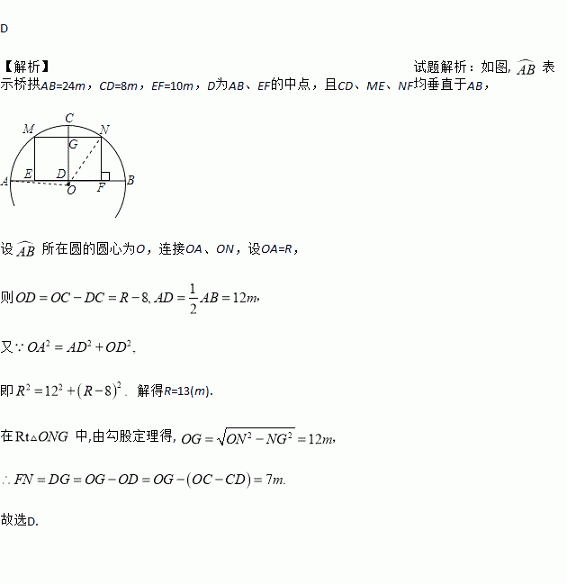 有一座圆弧形的拱桥,桥下水平宽,拱顶高出水平面,现有一货船,送一箱货欲从桥下经过,已知货箱(货箱底与水平面持平)宽,至多能截( )的货.
