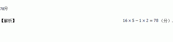 某次数学测验共20道选择题,规则是:选对一道得5分,选错一道得-1分,不选得零分,王明同学的卷面成绩是:选对16道题,选错2道题,有2道题未做,他的得分是 .