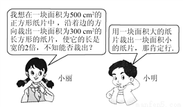 你同意小明的说法吗?小丽能否用这块纸片裁出符合要求的纸片呢?为什么?