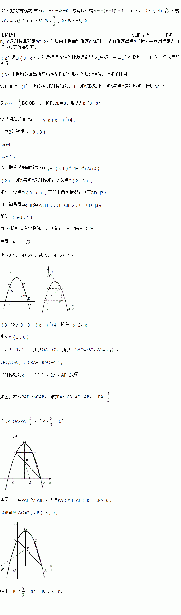 如图,抛物线y=ax 2+bx+c的顶点为M(1,4),与x轴的右交点为A,与y轴的交点为B,点C与点B关于抛物线的对称轴对称,且S△ABC =3.