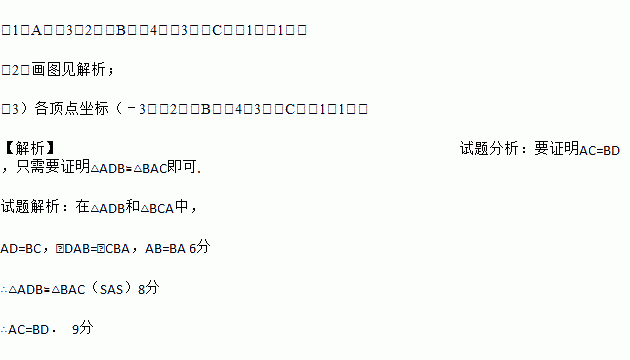 如图,在△ABC和△ABD中,AC与BD相交于点E,AD=BC,∠DAB=∠CBA,求证:AC=BD.