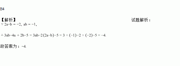 如果2a﹣b=﹣2,ab=﹣1,那么代数式3ab﹣4a+2b﹣5的值是________.