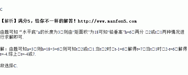 在平面直角坐标系xOy中,对于任意三点A,B,C的“矩面积”,给出如下定义:“水平底”a:任意两点横坐标差的最大值,“铅垂高”h:任意两点纵坐标差的最大值,则“矩面积”S=ah.例如:三点坐标分别为A(1,2),B(﹣3,1),C(2,﹣2),则“水平底”a=5,“铅垂高”h=4,“矩面积”S=ah=20.若D(1,2)、E(﹣2,1)、F(0,t)三点的“矩面积”为18,则t的值为( )
