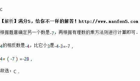一个数是4,另一个数比它的相反数小3,则这两个数的积为( )
