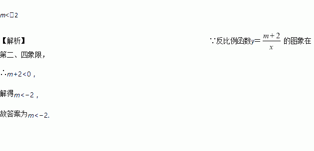 已知反比例函数y=的图象在第二、四象限,则m的取值范围是________.