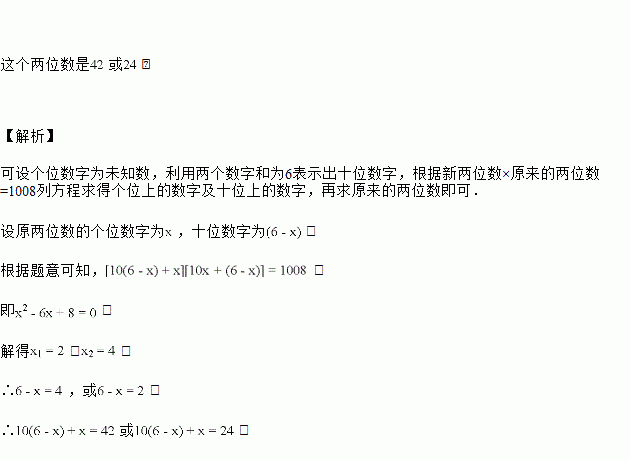 一个两位数,它的两个数字之和为,把这两个数字交换位置后所形成的两位数与原两位数的积是,求原来的两位数.
