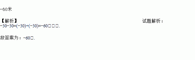 -60米 【解析】试题解析:?30?30=(?30)+(?30)=?60(米). 故答案为:?60米.