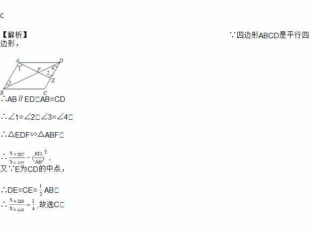 如图,在?ABCD中,若E为DC的中点,AC与BE交于点F,则△EFC与△BFA的面积比为( )