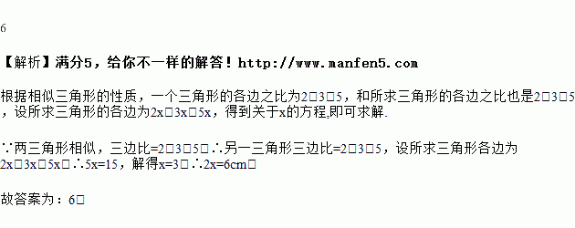一个三角形的各边之比为,和它相似的另一个三角形的最大边为,则最小边为________.