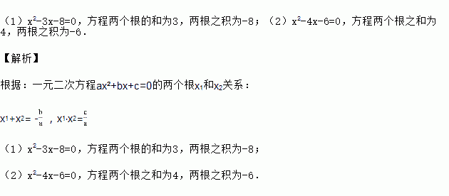 求下列方程两个根的和与积: