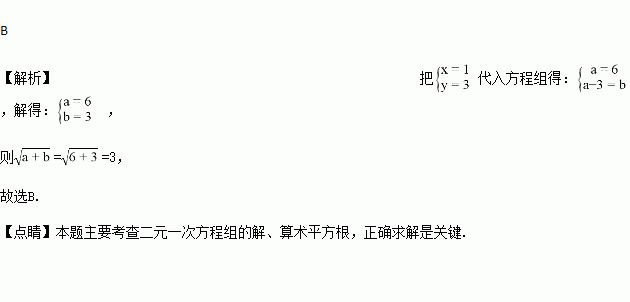 关于x,y的方程组的解为 ,则=( )