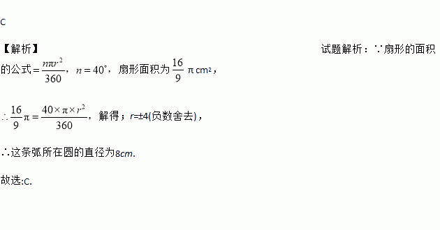 已知40°的圆心角所对应的扇形面积为π cm2,则这个扇形所在圆的直径为