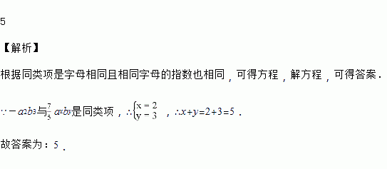 若-a2b3与axby是同类项,则x+y=________.