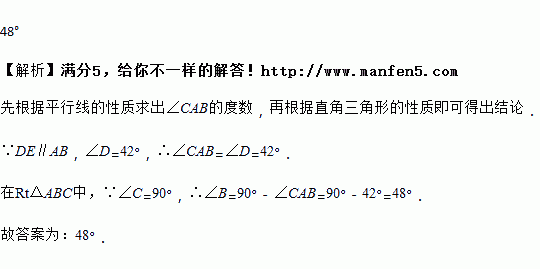 如图,DE∥AB,则∠B 的大小为________