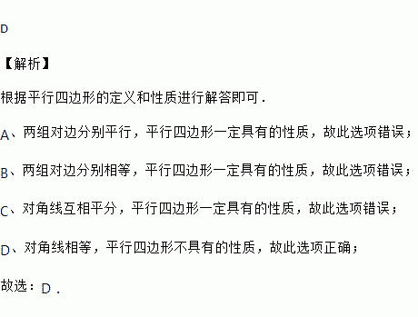 下列选项中,平行四边形不一定具有的性质是