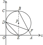 分析:连接PB、PE.由⊙P分别与OA、OC、BC相切于点E、D、B,与AB交于点F.易得B、P、E在一条直线上,易求得ZE与BE的长,则可求得∠ABE的度数,又由圆周角定理,即可求得答案.