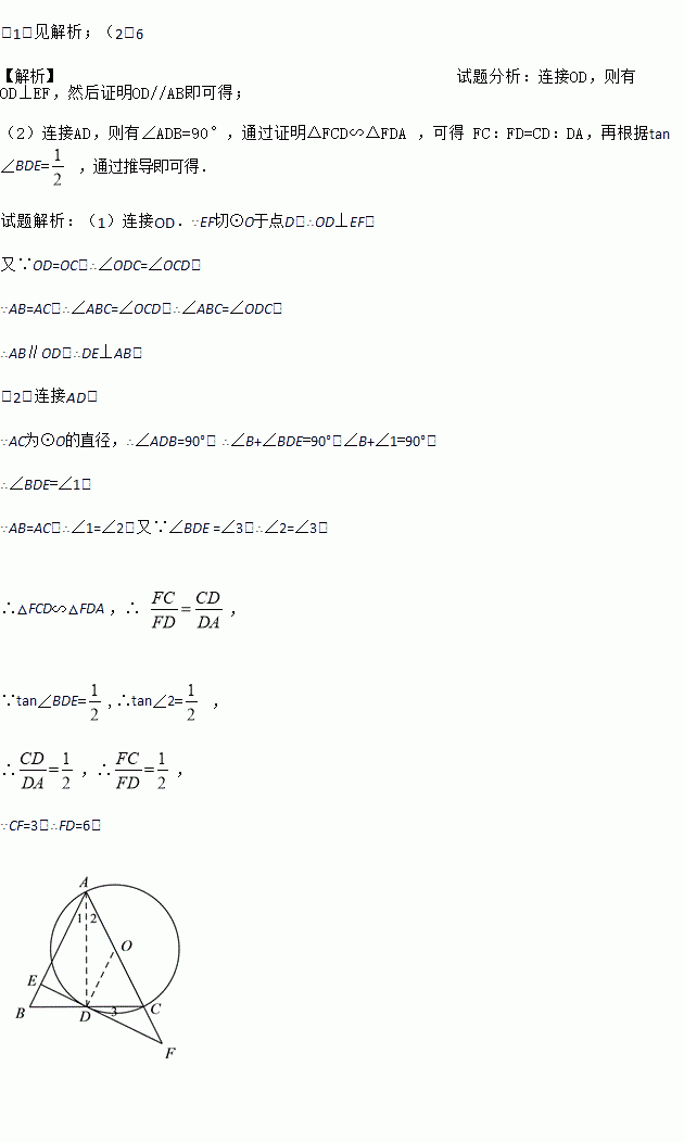 已知:如图,在△ABC中,AB=AC,以AC为直径作⊙O交BC于点D,过点D作⊙O的切线交AB于点E,交AC的延长线于点F.