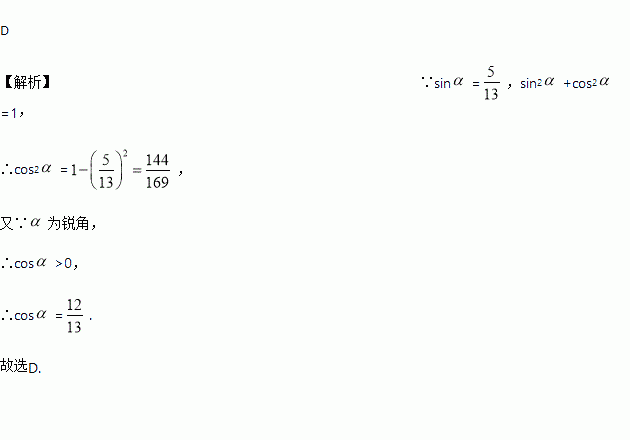 已知α为锐角,且sinα=,那么α的余弦值为( )