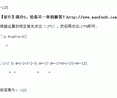 现规定a*b=ab+a-b,如1*3=1×3+1-3,则(-2*5)*6等于 ______ .
