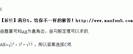已知在RtΔABC中,∠C=90°,AC=2,BC=3,则AB的长为( )