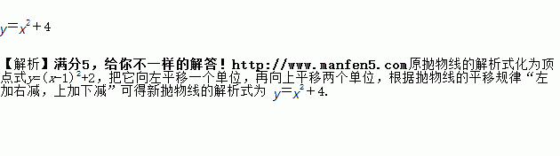 二次函数y=x2-2x+3的图象向左平移一个单位,再向上平移两个单位后,所得二次函数的解析式为_______________.