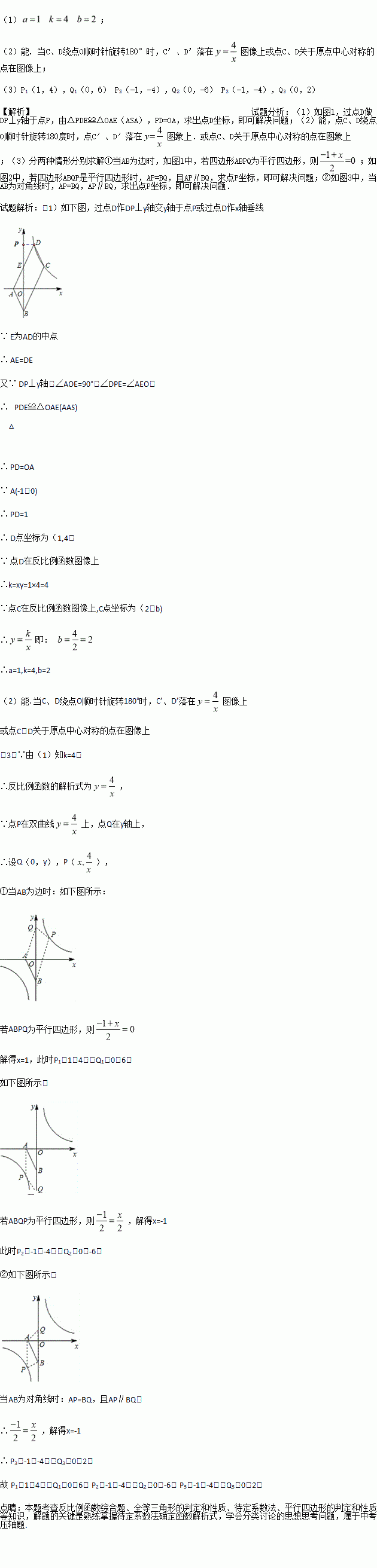 如图1,已知点A(﹣1,0),点B(0,﹣2),AD与y轴交于点E,且E为AD的中点,双曲线y=