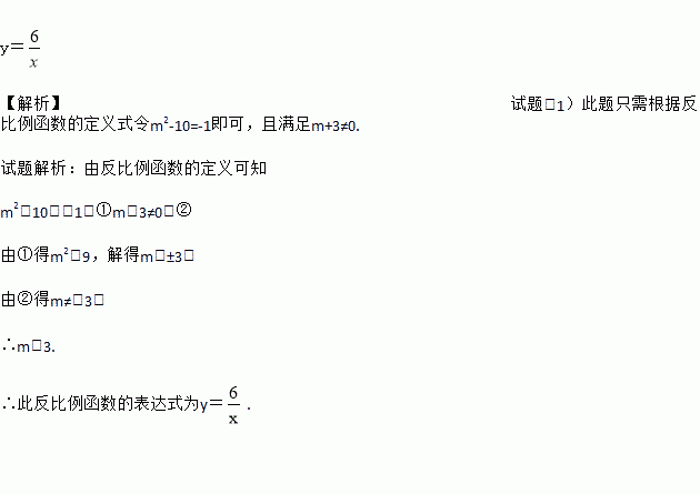 若y=(m+3)xm2-10是反比例函数,试求其函数表达式.