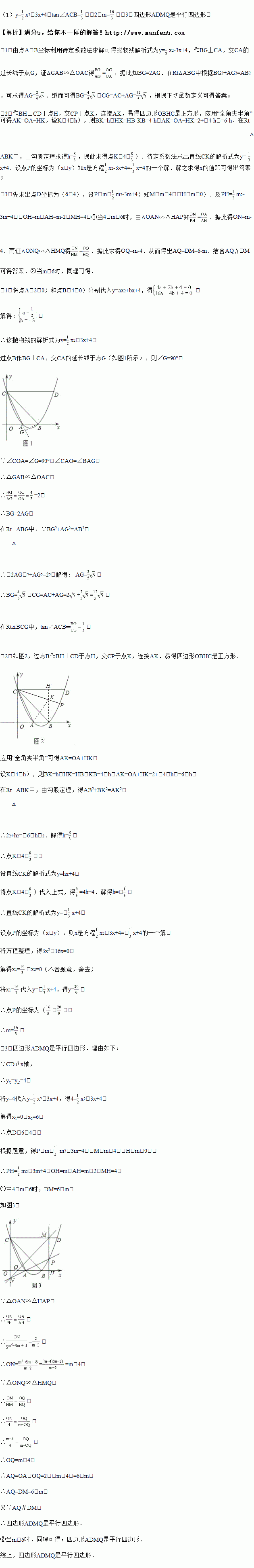 (3)如图3,过点A、P的直线与y轴于点N,过点P作PM⊥CD,垂足为M,直线MN与x轴交于点Q,试判断四边形ADMQ的形状,并说明理由.