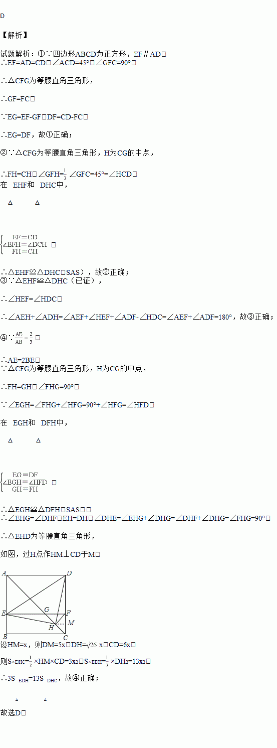 如图,在正方形ABCD中,AC为对角线,E为AB上一点,过点E作,与AC、DC分别交于点![]()